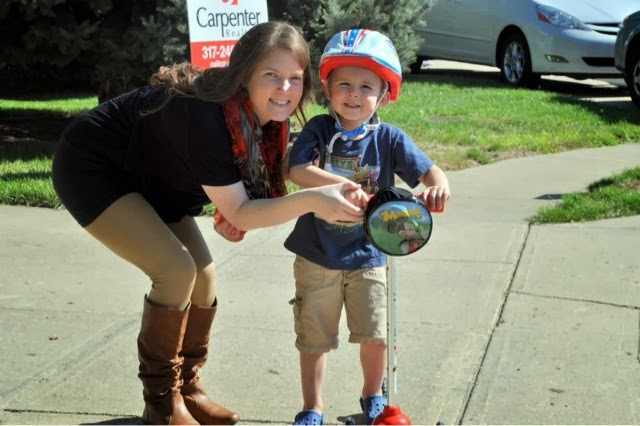 Steph and Coop with his scooter. He had to ride it as soon as it was ready!